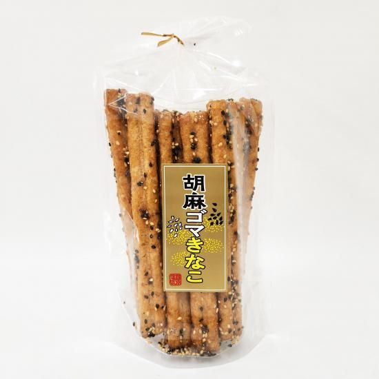 サクッとした食感でごまときなこの絶妙なハーモニーがくせになるお菓子で、食べ始めるとどんどんたべてしまうというお声もいただいています。