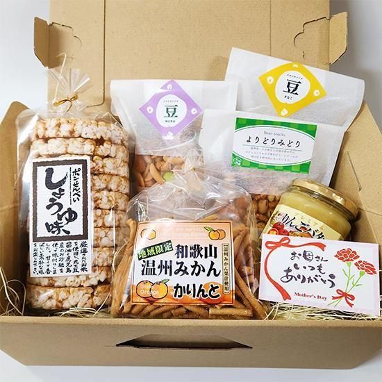 母の日にぴったりな人気のお菓子等6個をメッセージカード付きで詰め合わせました。